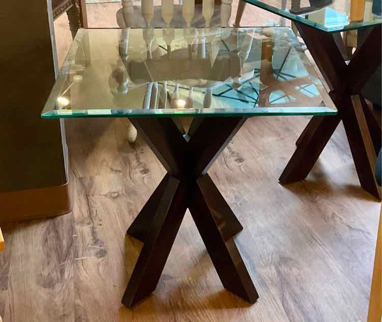 Modern Wood & Glass End Table | 24.5"H x 24"W x 24"D | 2 Available | REDUCED PRICE | NOW $20.00 Each | WAS $52.00 Each #388-125 SHIPPING NOT AVAILABLE. ALL SALES ARE FINAL.