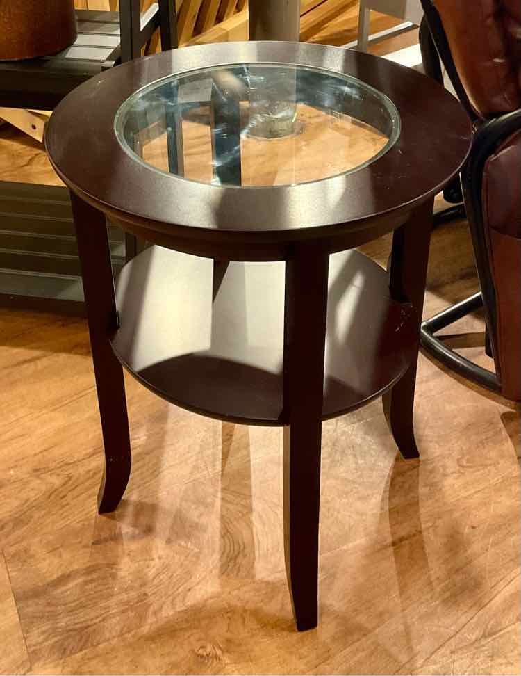 2-Tiered Glass Inlay Side Table | 22.25"H x 18"DIA | $28.00#1613-348