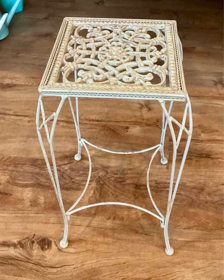 Wrought Iron Scrolled Design Plant Stand | 21"H x 10"W x 10"D | $28.00