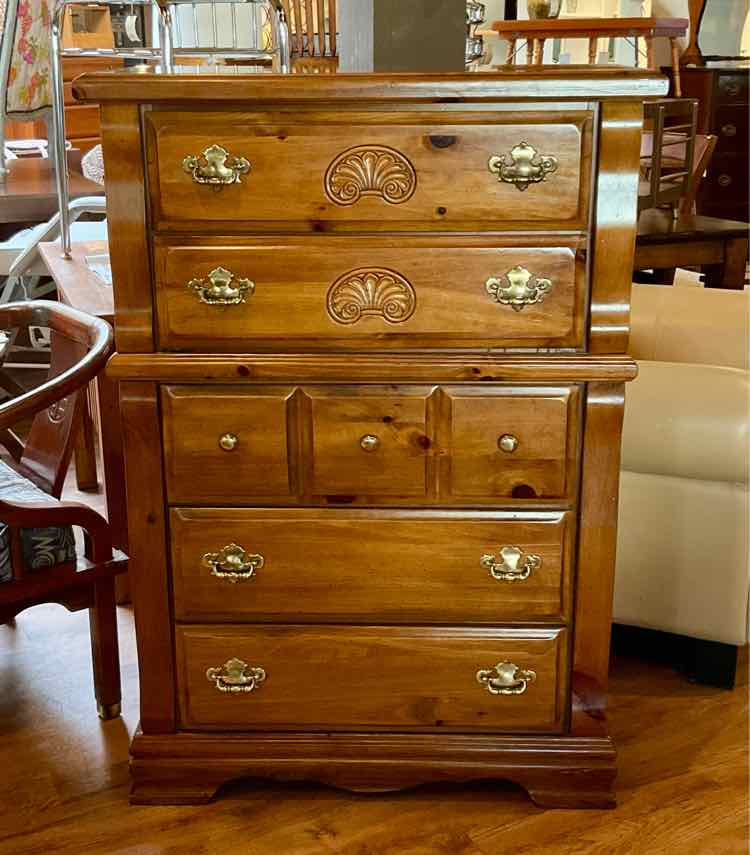 Knotty Pine 5 Drawer High-Boy Dresser | 51"H x 36"W x 18"D | $192.00#421-500